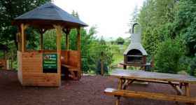 Grillstelle mit Schutzhütte für ca. 12 Personen. Weitere Sitzplätze für ca. 24 Personen im Freien.