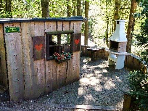 Grillstelle mit kleiner Schutzhütte für ca. 8 Personen. Weitere Sitzplätze für ca. 8 Personen im Freien.