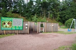 In der Parkmitte nach dem Vogelkundehaus befindet sich ein großes Labyrinth mit Uhu-Suchspiel, umgeben von weiteren Spielgeräten und einem Trampolin. Hier können Groß und Klein Spaß haben. Neu ist hier ein Balancier-Pfad für Groß und Klein.
